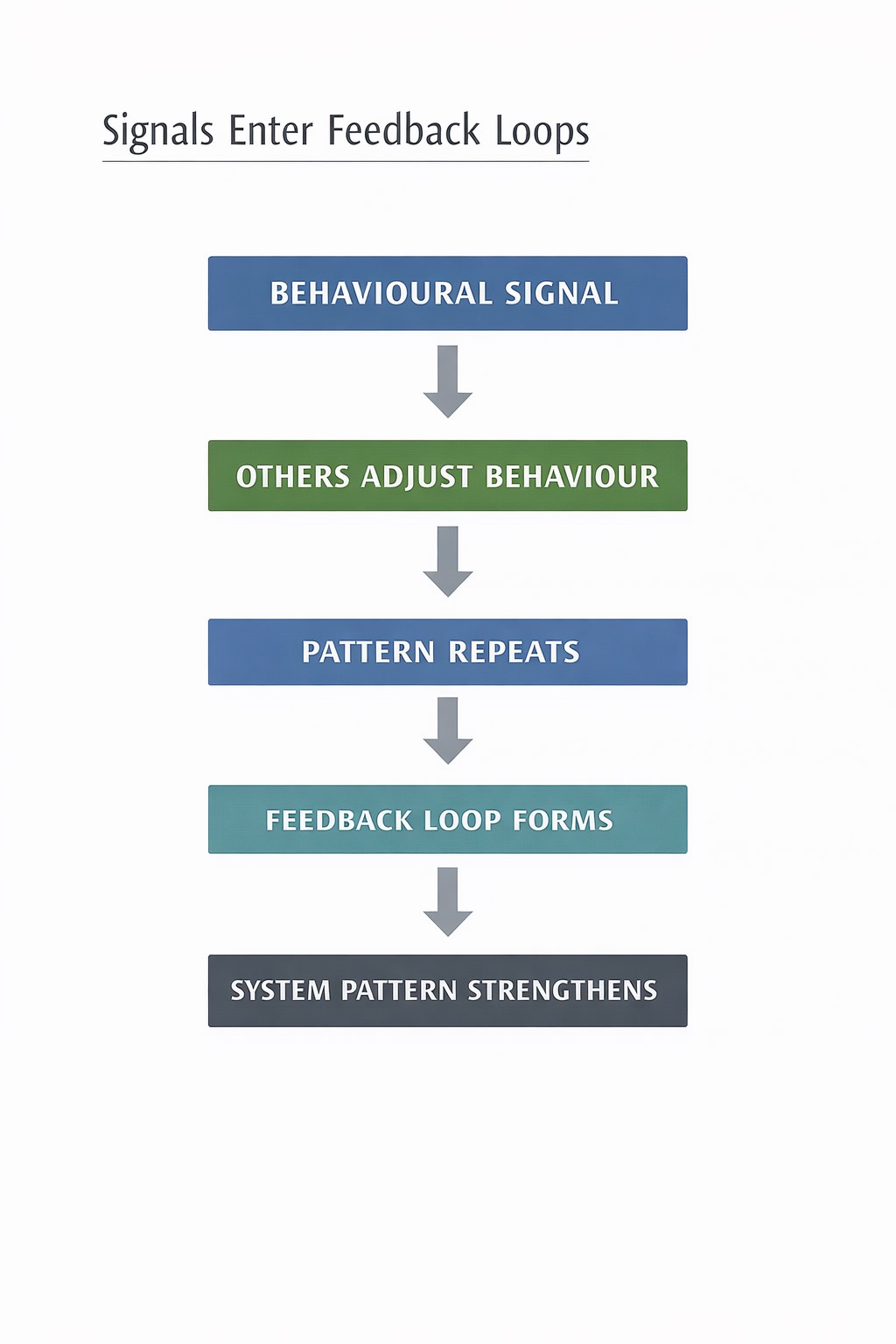 When such signals recur consistently, they gradually influence feedback loops and alter the patterns from which system outcomes emerge.